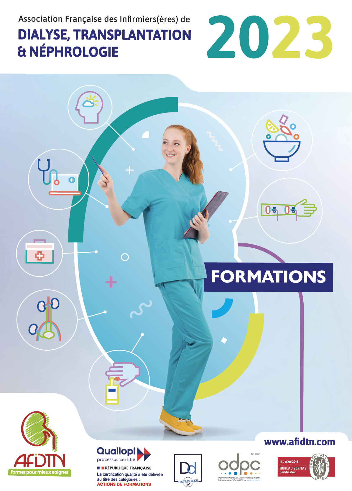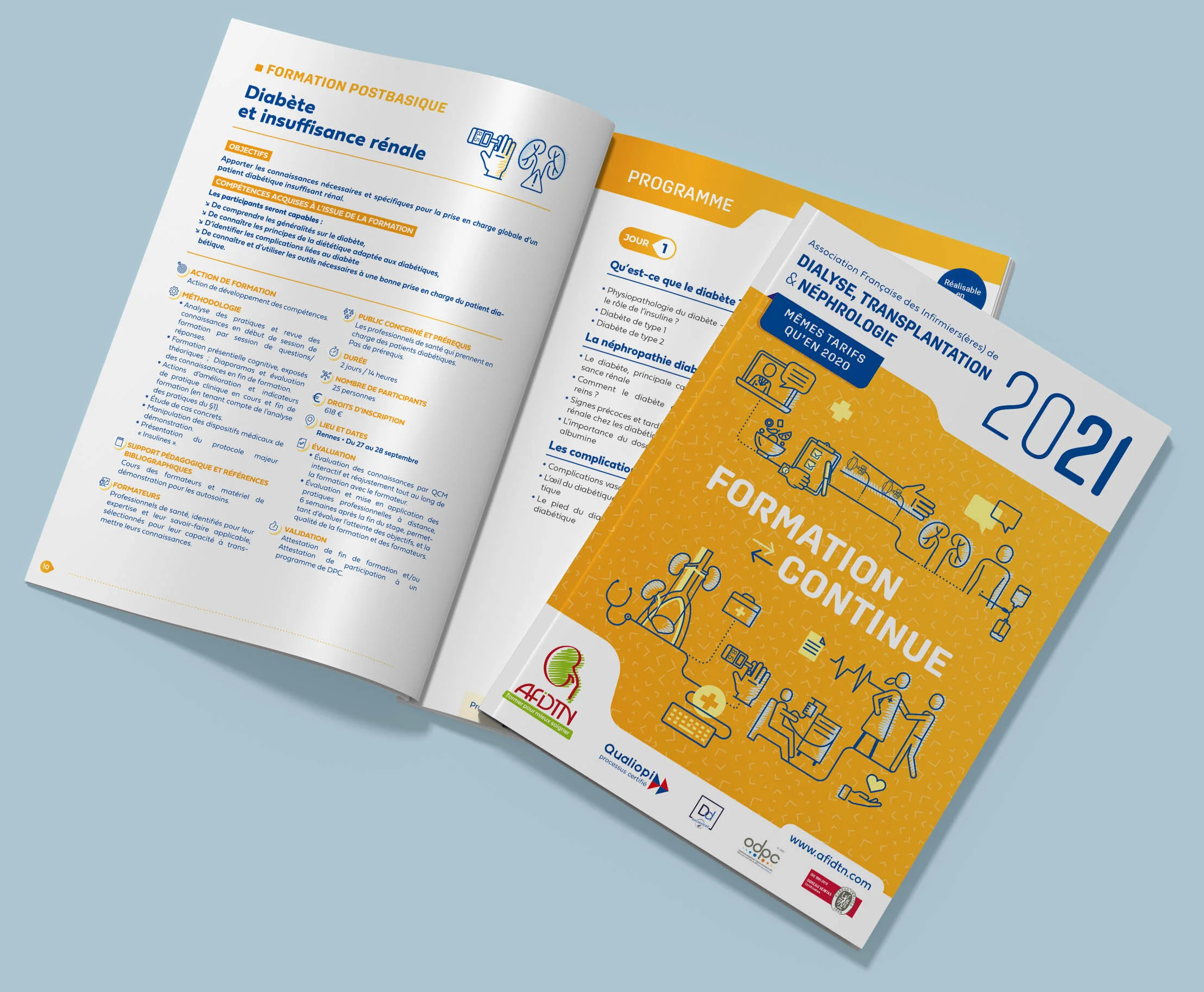 Création graphique des catalogues de formations 2021, 2022, 2023, 2024 de l’AFIDTN (Association française des infirmier(e)s de dialyse, transplantation et néphrologie)
