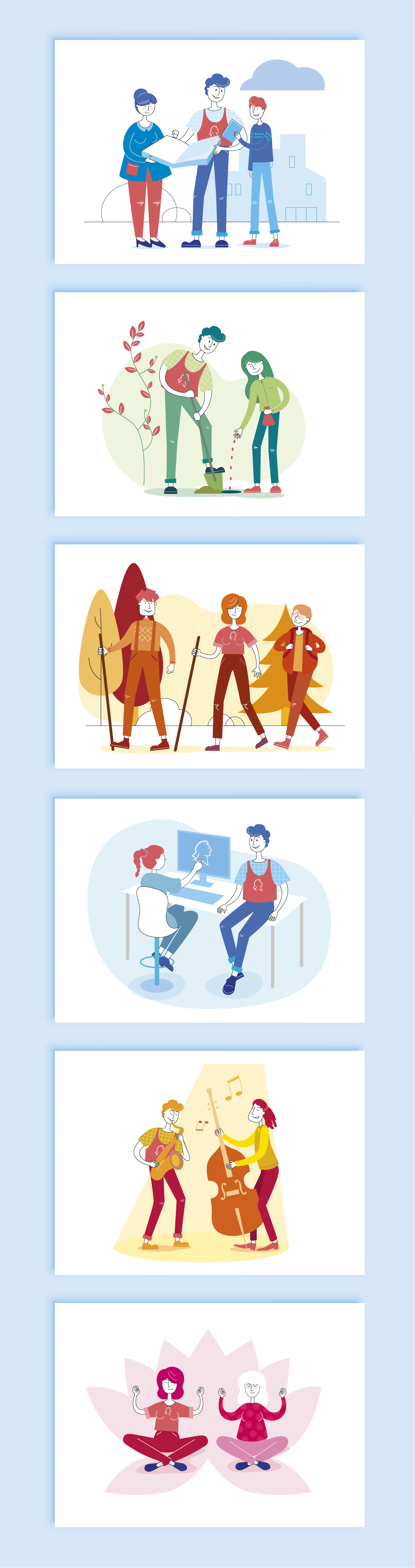 Création d’illustrations vectorielles représentant l’interaction des agents de la ville de Saint-Étienne-du Rouvray avec les habitants.