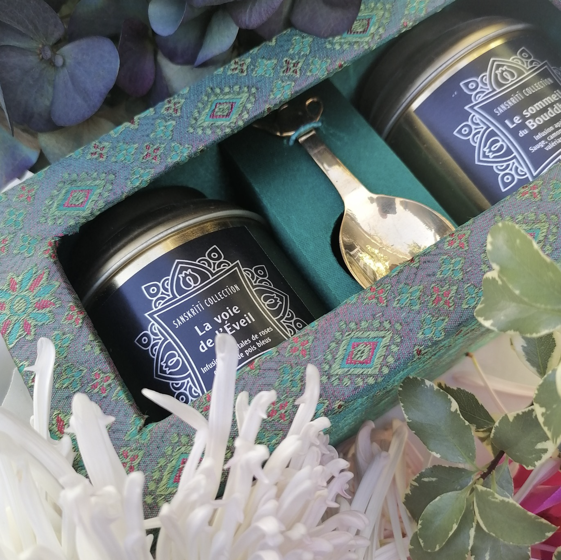 Réalisation de l’identité visuelle de Sanskriti Collection, importateur et créateur de thés, bijoux, étoles, coffrets et figurines manufacturés en Inde, fournisseur des musées français.